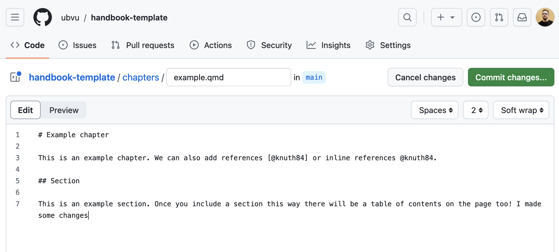 Once you made your edits, you are ready to commit (save) your changes and submit your pull request, requesting those changes to be included in the handbook.