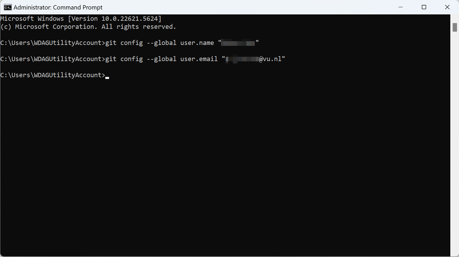 Open a command prompt to set your username and email address, without this you cannot push your changes to GitHub.